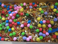 - 1001 petites choses (riz, pompons, paillettes, eau et colorant alimentaire, eau et huile, vermicelles, coton, confettis…)