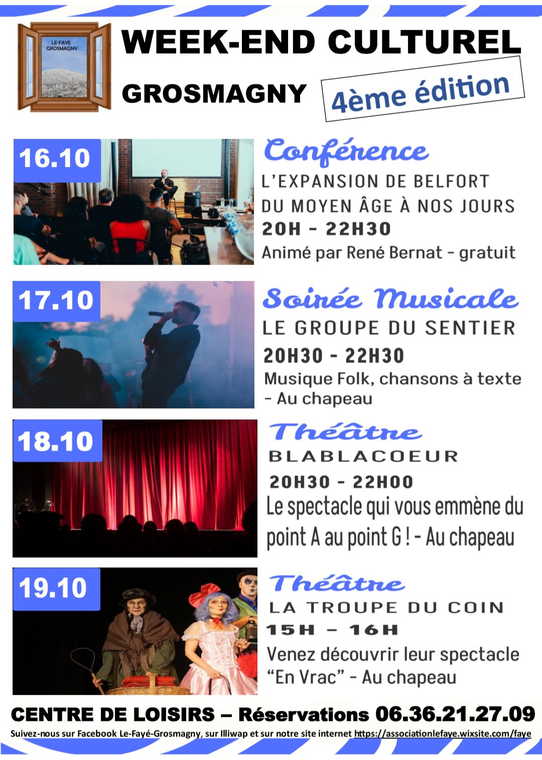 - 17/10 : Soirée musicale de 20h30 à 22h30 - Le groupe du sentier : folk, chanson à texte